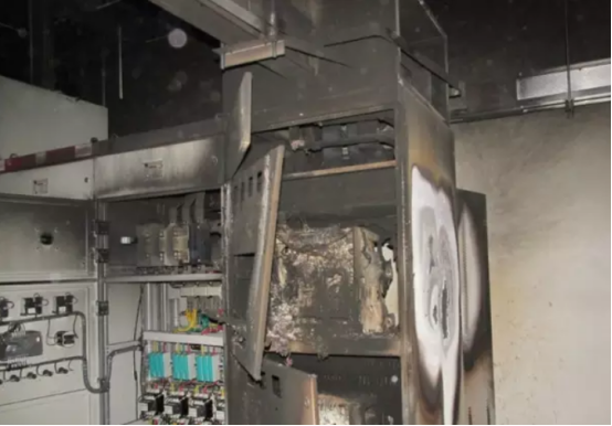 安裝在變電站和小區(qū)配電室內(nèi)的干式變壓器,因環(huán)境封閉,通風(fēng)散熱條件差,容易因設(shè)備過發(fā)生熱火災(zāi)。同時(shí)在一個(gè)密閉的空間,火災(zāi)發(fā)生后產(chǎn)生的濃煙使柜內(nèi)空氣絕緣水平降低,母線對(duì)開關(guān)柜體放電,造成母線相間短路,進(jìn)而發(fā)展為主變低壓側(cè)開關(guān)跳閘,10kV 母線失壓、干變及開關(guān)柜燒毀的事件。