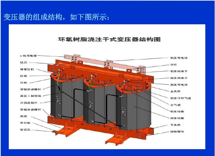⒊澆注式:用環(huán)氧樹(shù)脂或其它樹(shù)脂澆注作為主絕緣,它結(jié)構(gòu)簡(jiǎn)單、體積小,適用于較小容量的變壓器。