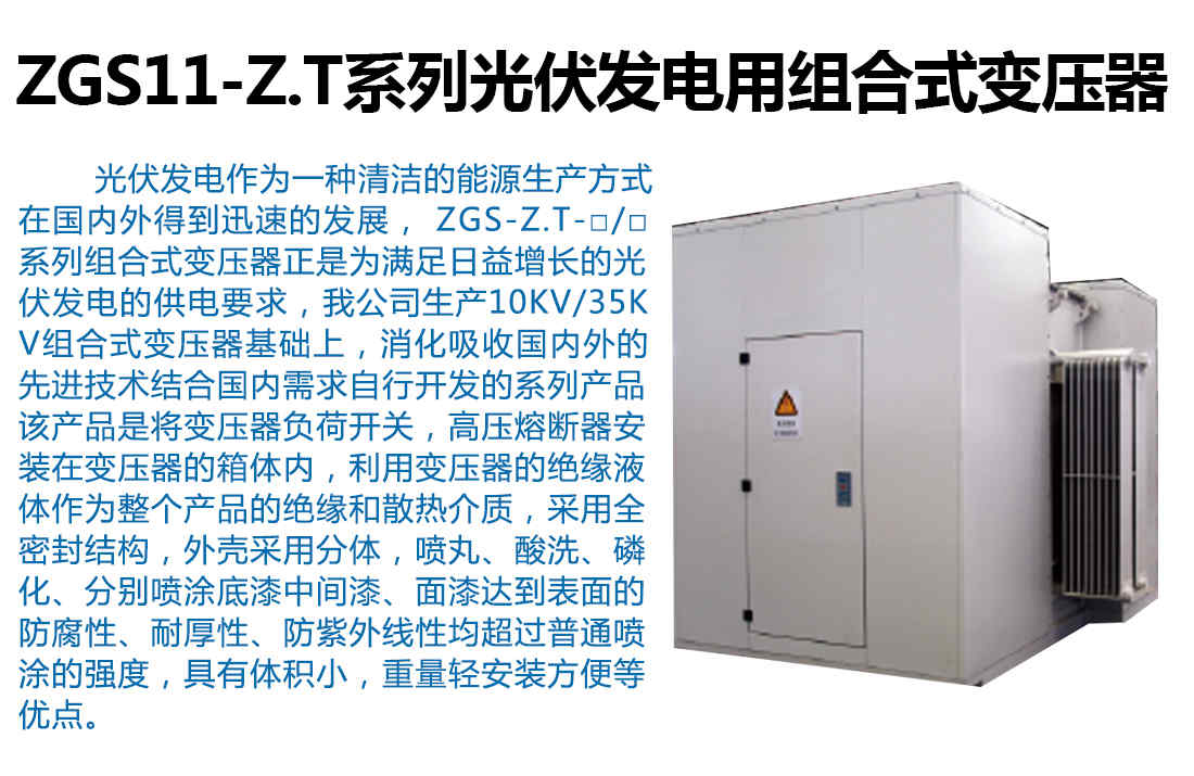 首頁(yè)>>產(chǎn)品中心>>箱式變電站ZGS11-Z.T系列光伏發(fā)電用組合式變壓器廠家