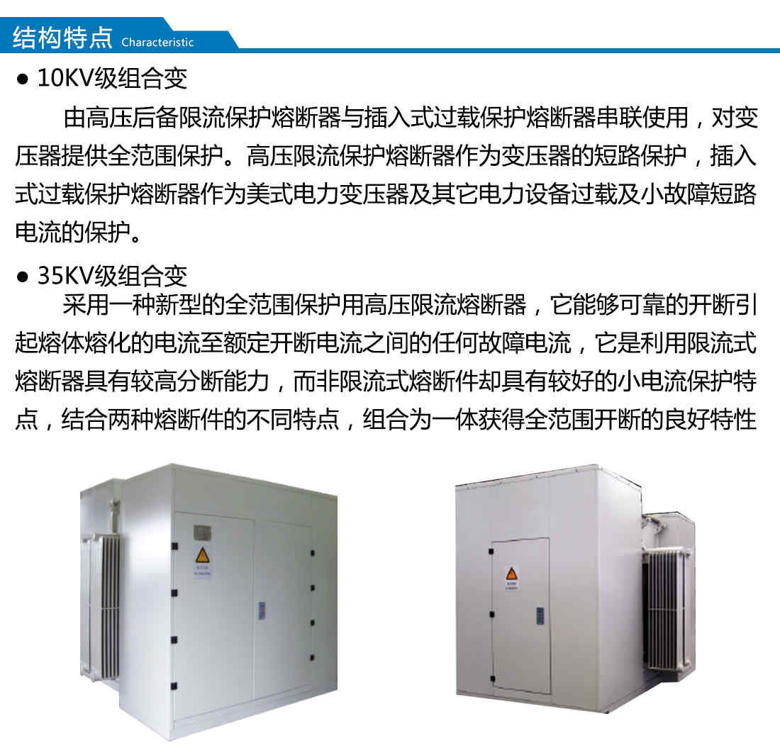 本產(chǎn)品是將變壓器,負(fù)荷開(kāi)關(guān),高壓熔斷器安裝在變壓器的箱體內(nèi),利用變壓器的絕緣液體作為整個(gè)產(chǎn)品的絕緣和散熱介質(zhì),采用全密封結(jié)構(gòu),外殼采用分體,噴丸、酸洗、磷化、分別噴涂底漆、中間漆、面漆達(dá)到表面的防腐性、耐厚性、防紫外線(xiàn)性均超過(guò)普通噴涂的強(qiáng)度,具有體積小,重量輕、安裝方便等優(yōu)點(diǎn)。